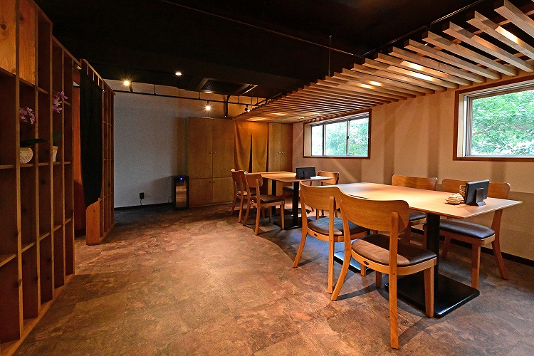 テーブルも椅子に合わせてセレクトし、カウンター席や個室にもゆとりあるレイアウトを実現しました。